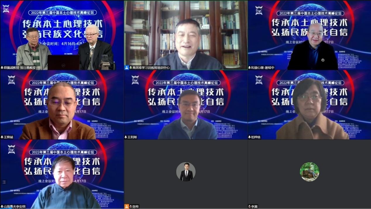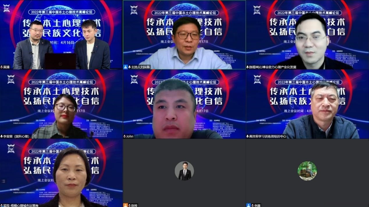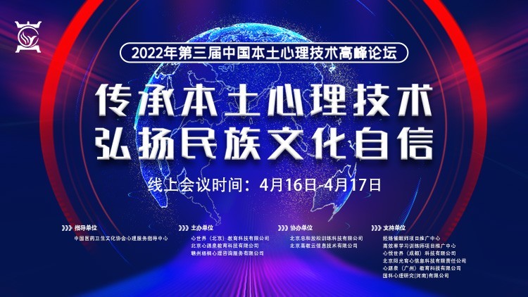 2022年4月17日,第三届中国本土心理技术高峰论坛圆满落幕。本次论坛在中国医药卫生文化协会心理服务指导中心的指导下,由心世界(北京)教育科技有限公司、北京心源泉教育科技有限公司、赣州梧桐心理咨询服务有限公司主办,本届论坛主席为北京大学医学部医学心理胡佩诚教授、著名中医心理学家张伯华教授、著名国学家李安纲教授,同时,邀请了胡宝伟、王焕斌、谢裕中为大会副主席,陈锡坤为秘书长。论坛历时两天,汇聚了40余位国内资深本土心理技术专家,线上参会3000多人,与会嘉宾就本土心理技术存在的问题和发展方向进行了深入浅出的探讨和交流。