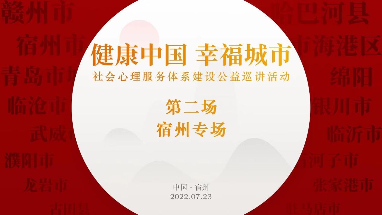 7月23日,由宿州市和全国二十余个城市联合主办的“健康中国、幸福城市”社会心理服务体系建设公益巡讲活动第2场宿州专场将正式举行。