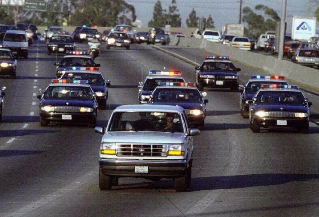 很显然这位善于奔跑的橄榄球运动员没想到,这辆车头画着骏马的Bronco压根跑不快,逼得车内的O. J. Simpson只能以自杀相威胁,来阻止身后看戏的数十辆警车的“追赶”。
